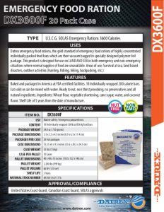 Datrex emergency food rations, the gold standard of emergency food rations of highly concentrated individually packed food bars which are then vacuum bagged in specially designed polymer-foil package.