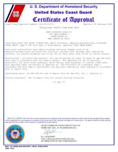 - Automatically inflates upon immersion in water or when the wearer pulls the “Jerk to Inflate” handle